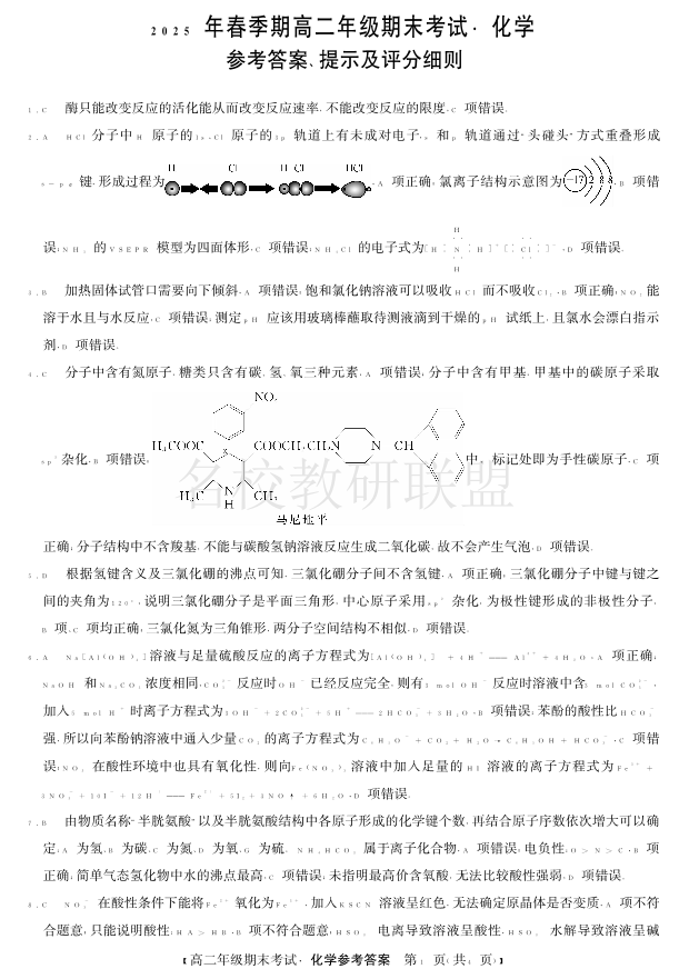 梧州市2025年春季期高二年级7月期末考试 化学答案.pdf