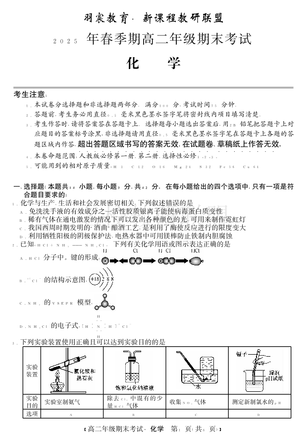 梧州市2025年春季期高二年级7月期末考试 化学.pdf