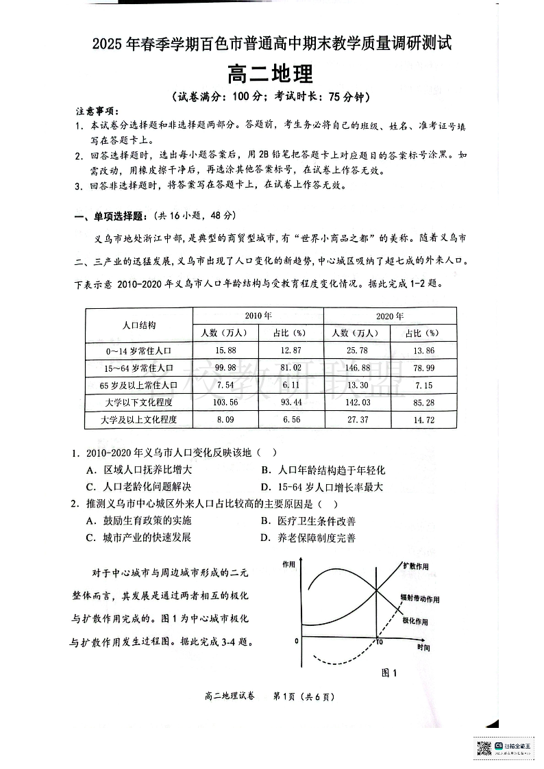 2025年春季学期百色市普通高中高二年级期末教学质量调研测试 地理试卷(含答案).pdf