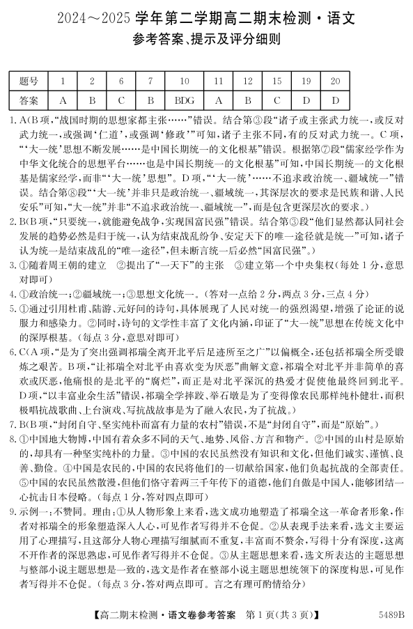 安徽省县中联盟2024-2025学年第二学期高二期末检测 语文答案.pdf