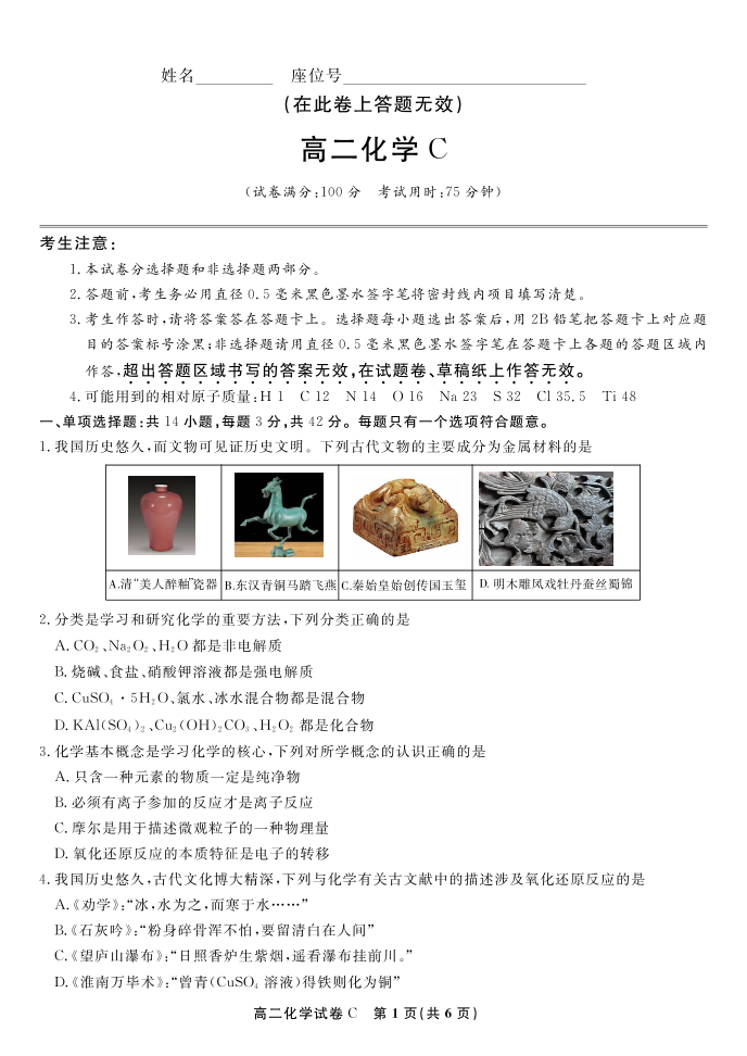 化学试题C·2025年7月高二期末联考.pdf