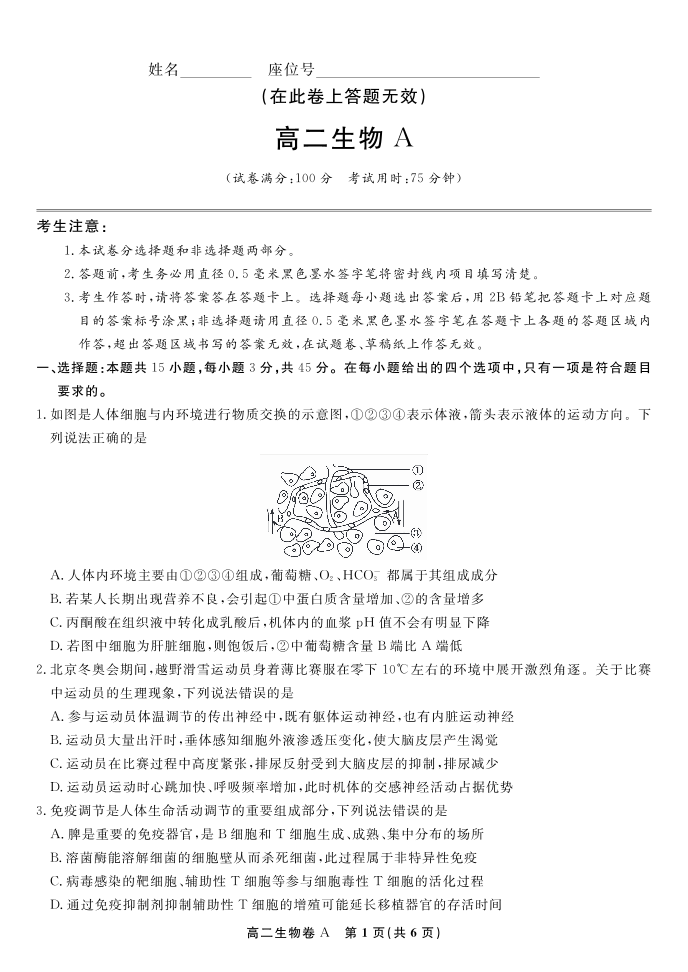 生物试题A·2025年7月高二期末联考.pdf