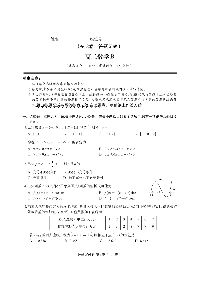 数学试题B·2025年7月高二期末联考.pdf