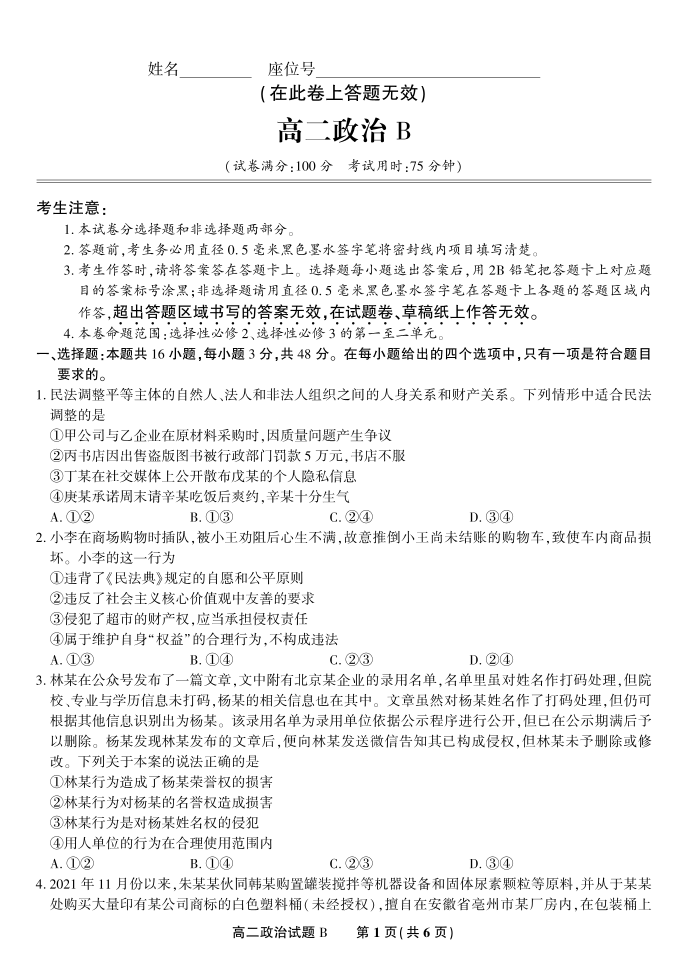 政治试题B·2025年7月高二期末联考.pdf