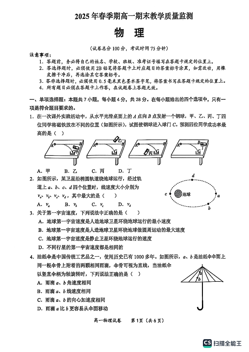 玉林市2025年春季期高一期末教学质量监测 物理.pdf