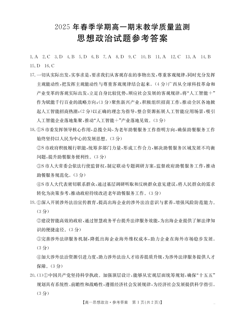 政治试卷(贵港、崇左、贺州)高一下期末考答案.pdf