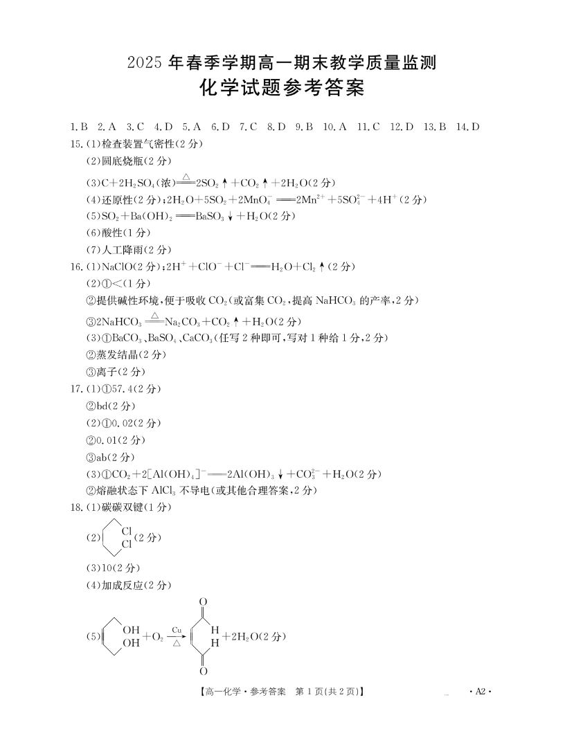 化学试卷(贵港、崇左、贺州)高一下期末考答案.pdf