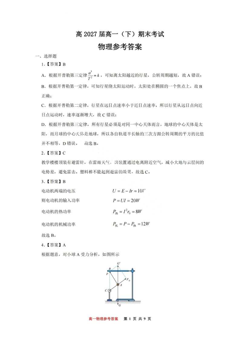重庆市巴蜀中学教育集团高2027届高一(下)期末考试 物理答案.pdf