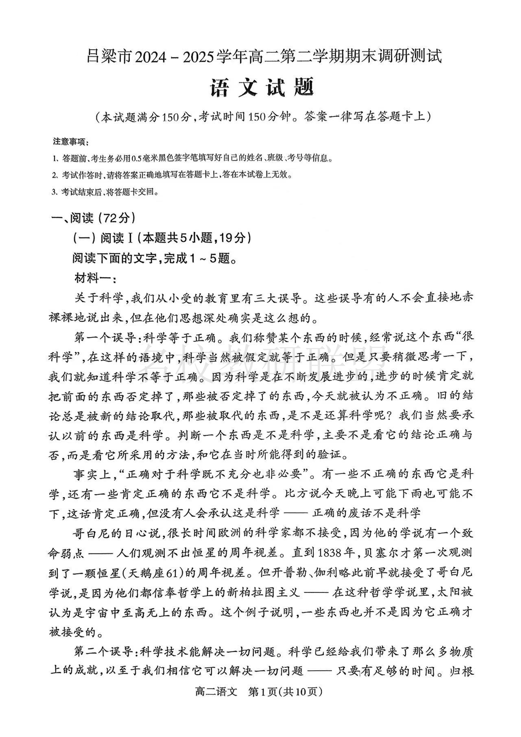 山西省吕梁市2024-2025学年高二第二学期期末调研测试 语文.pdf