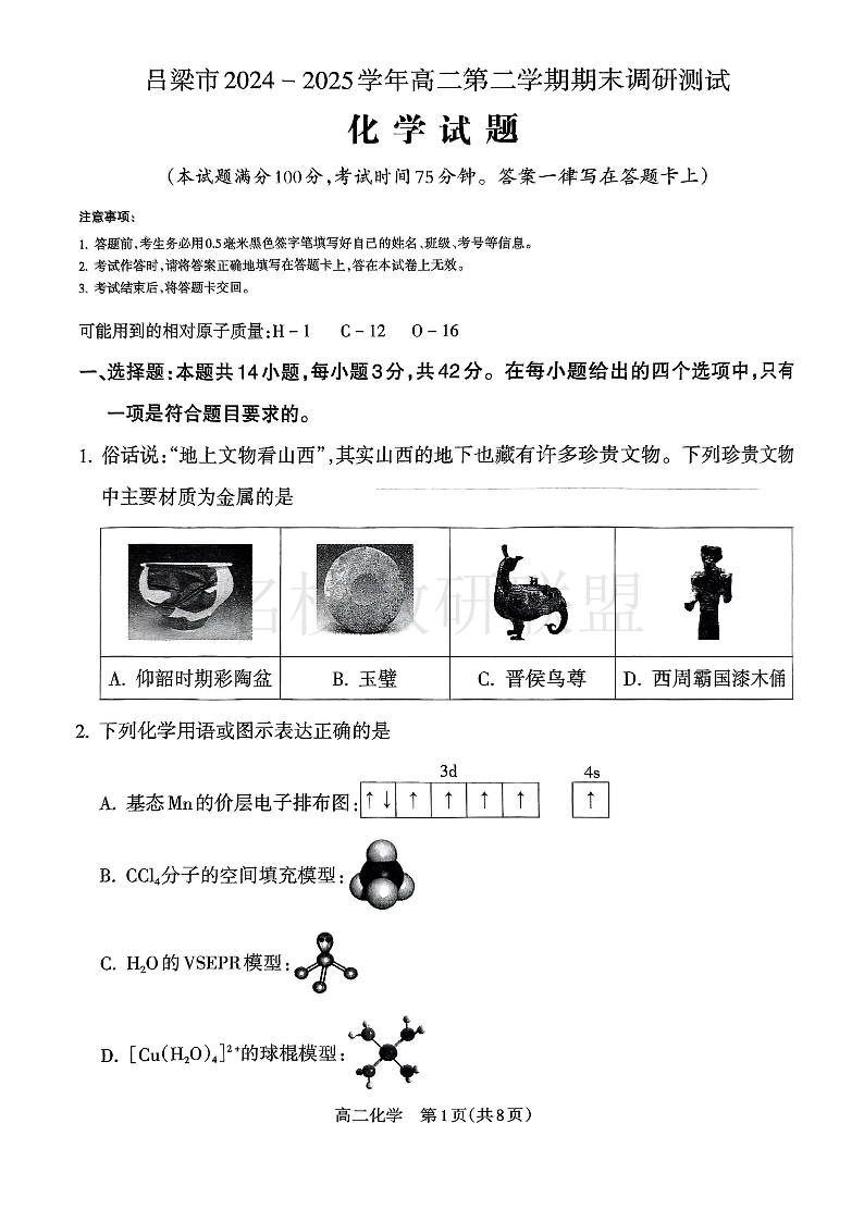 山西省吕梁市2024-2025学年高二第二学期期末调研测试 化学试题(含答案).pdf