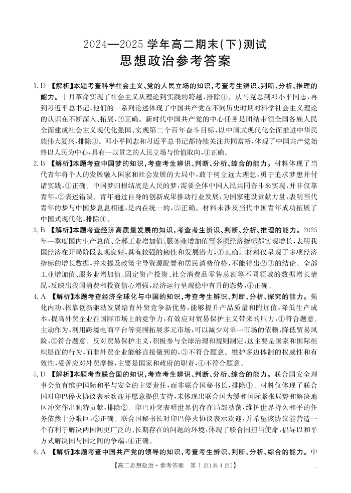 河南省新乡市2024-2025学年高二期末(下)测试 政治答案.pdf