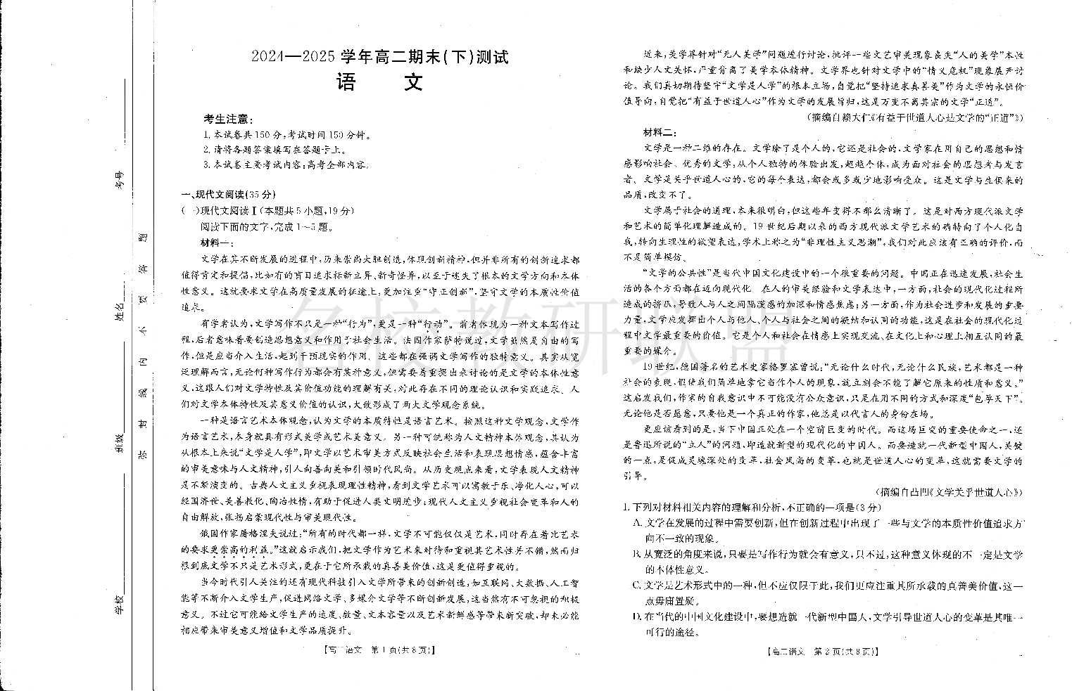 河南省新乡市2024-2025学年高二期末(下)测试 语文.pdf