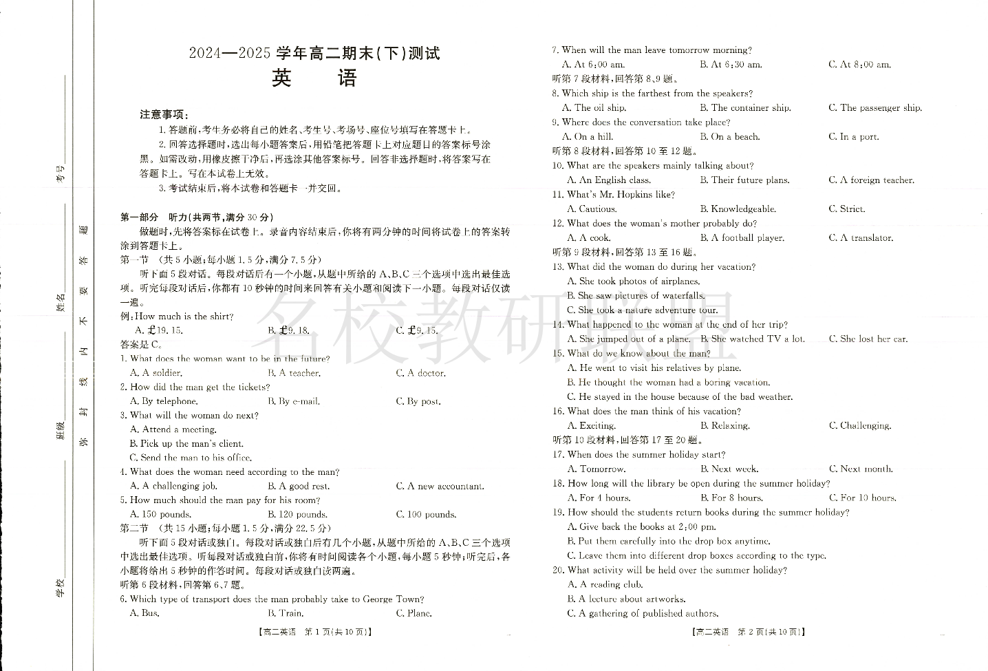 河南省新乡市2024-2025学年高二期末(下)测试 英语.pdf