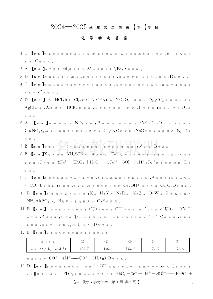 河南省新乡市2024-2025学年高二期末(下)测试 化学答案.pdf