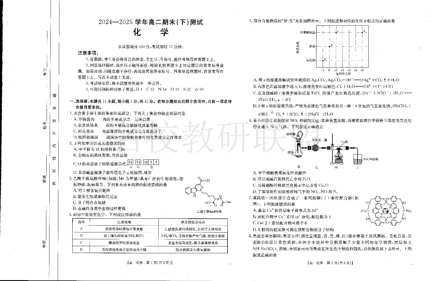 河南省新乡市2024-2025学年高二期末(下)测试 化学.pdf