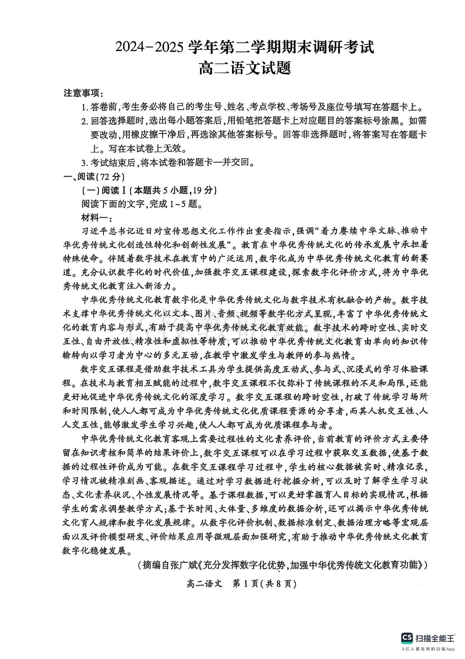 河南省开封市2024-2025学年高二下学期期末调研考试 语文试卷(含答案).pdf