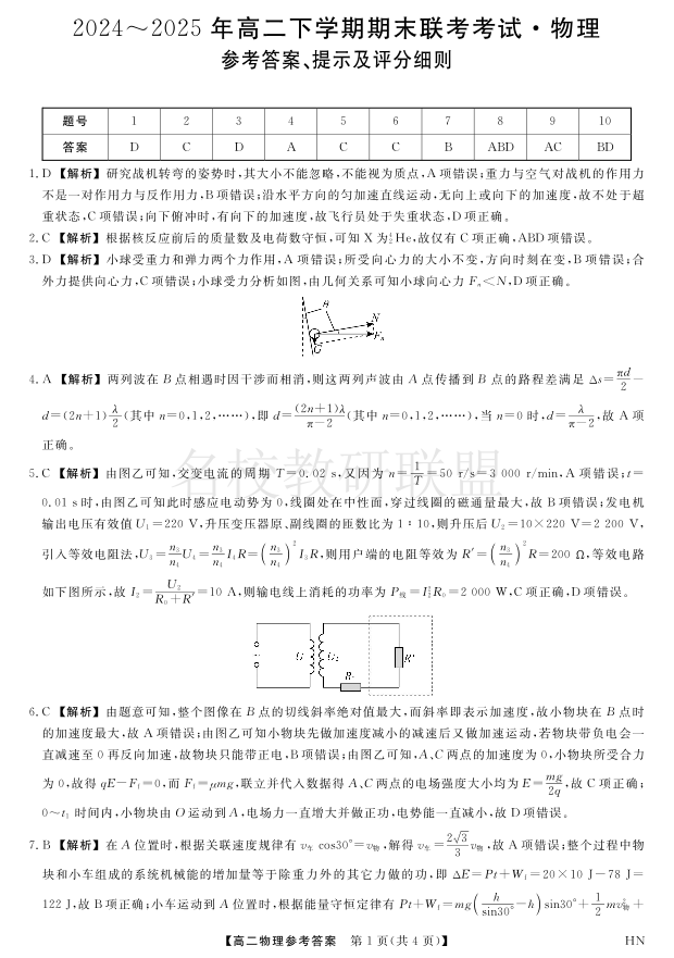 金科·新未来7月3-4日高二联考-物理详解版答案.pdf