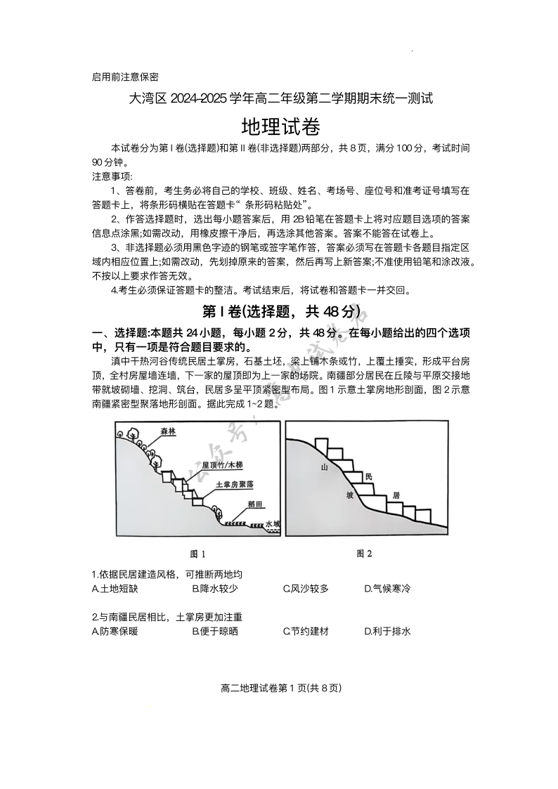 大湾区2024-2025学年高二年级第二学期期末统一测试 地理试卷(含答案).pdf