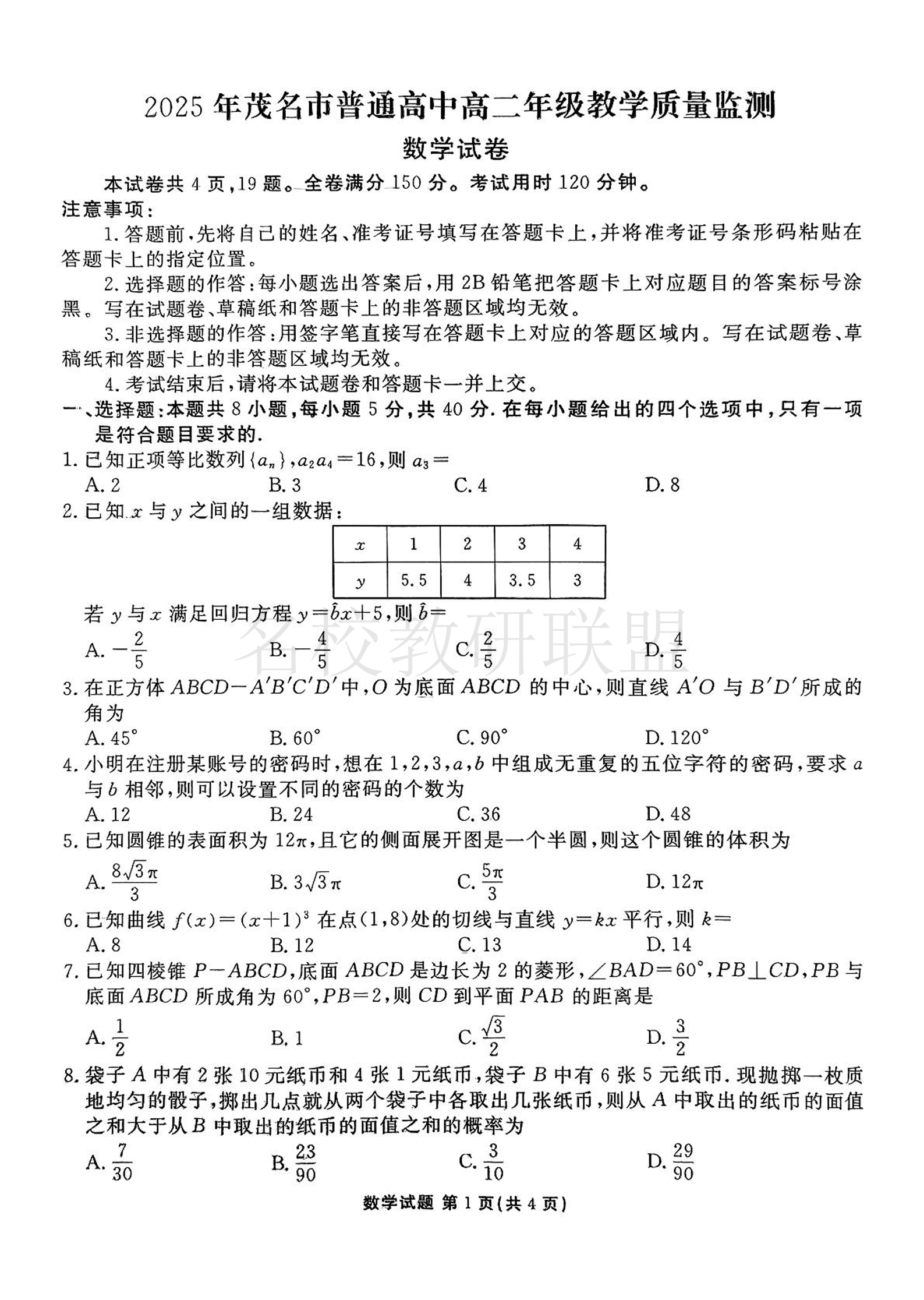 2025年茂名市普通高中高二年级教学质量检测 数学.pdf