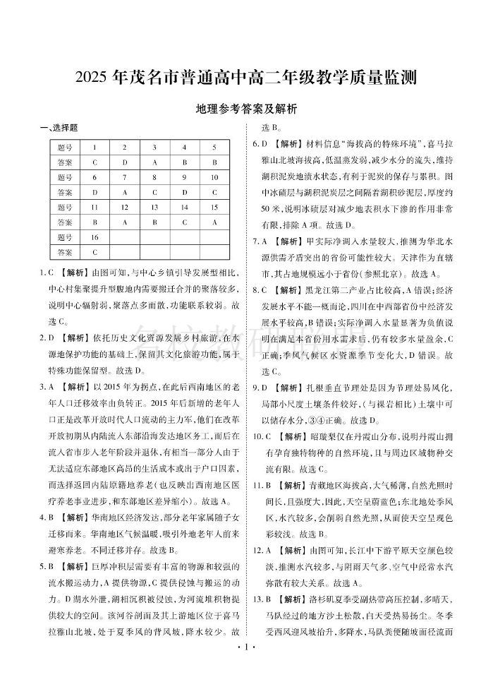 2025年茂名市普通高中高二年级教学质量检测 地理答案.pdf