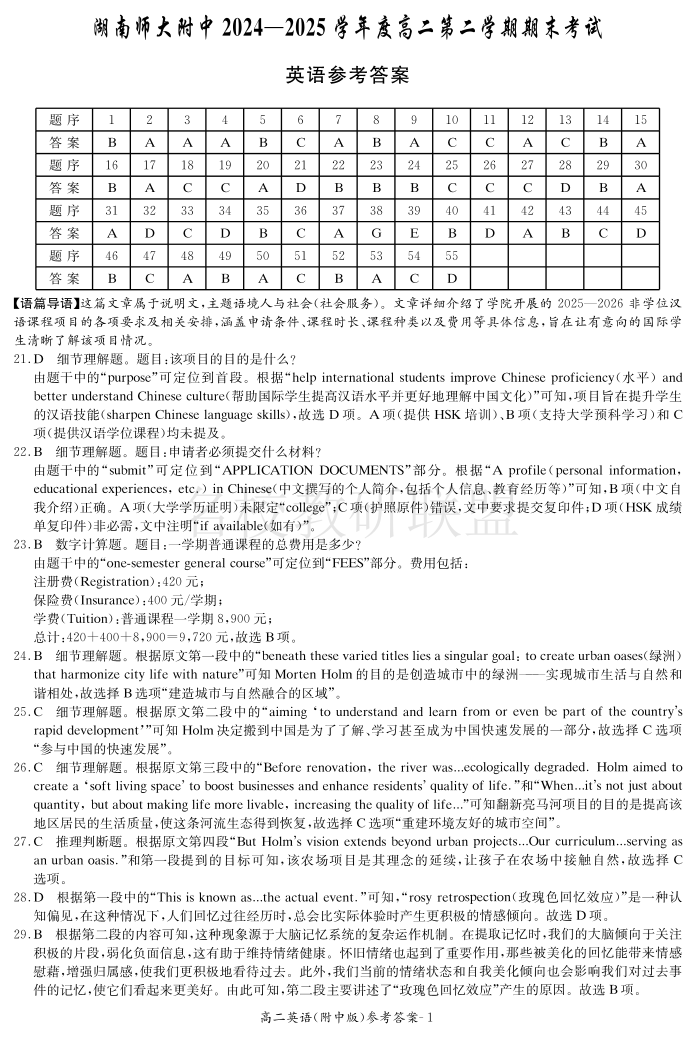 英语答案-湖南师大附中2024-2025高二下期末.pdf