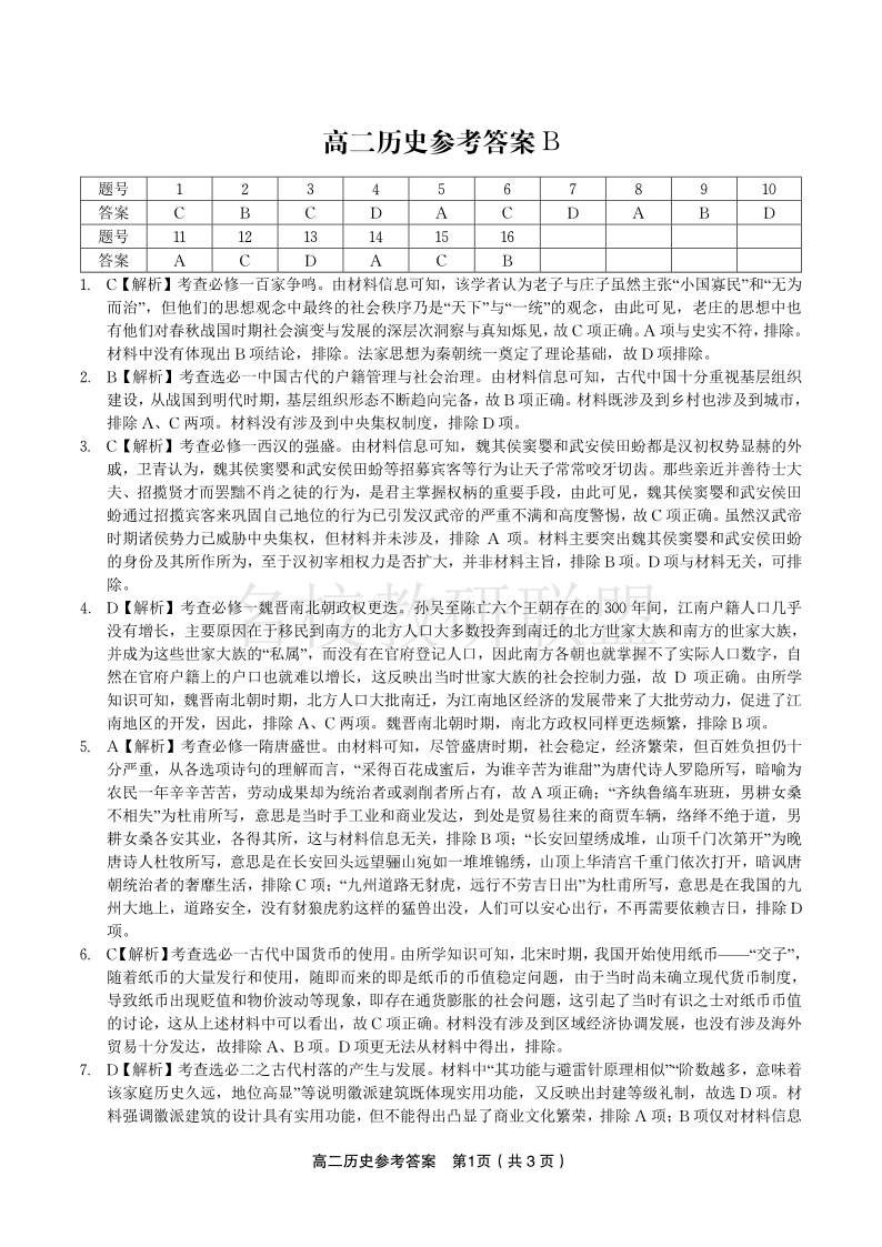 历史试题卷B -高二下7月期末联考答案 .pdf