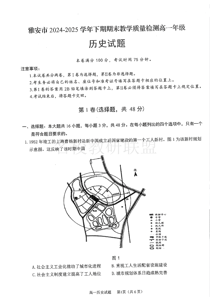 四川省雅安市2024-2025学年高一下学期期末教学质量检测 历史试卷(含答案).pdf