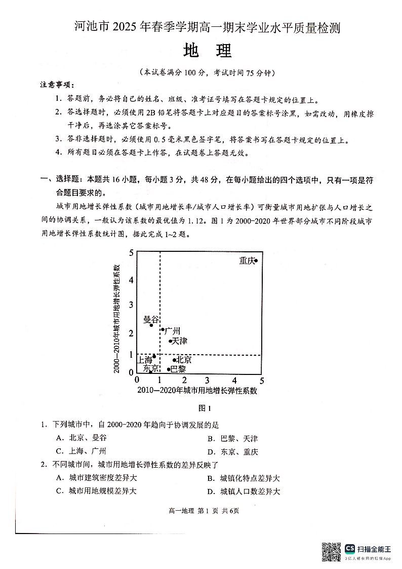广西壮族自治区河池市2025年春季学期高一年级期末学业水平质量监测 地理.pdf