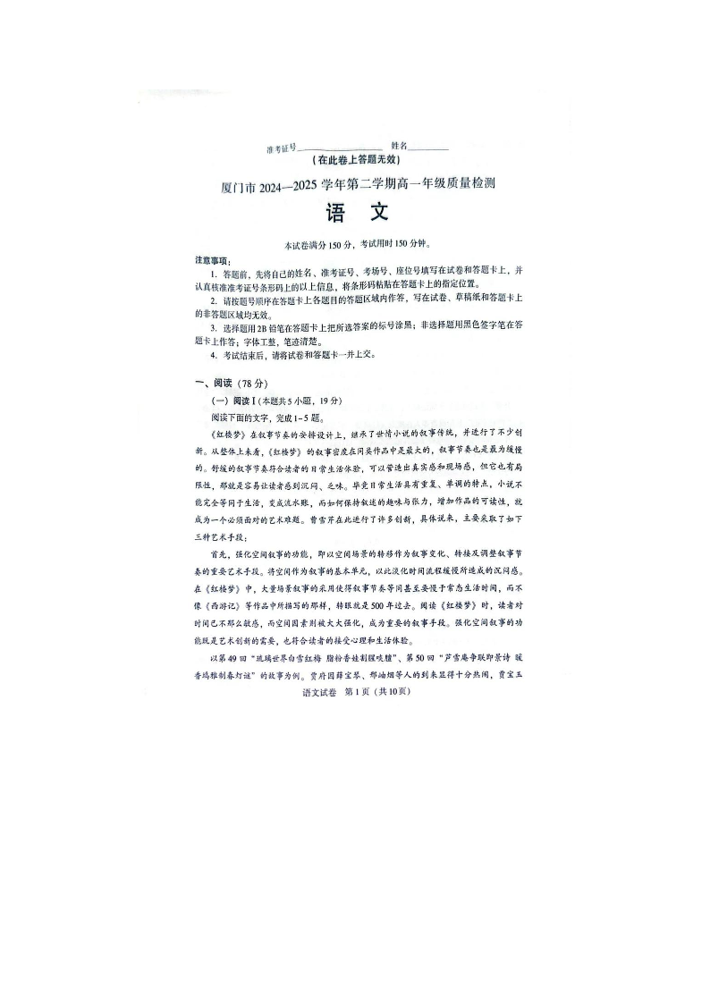 福建省厦门市2024-2025学年第二学期高一年级期末质量检测 语文.pdf