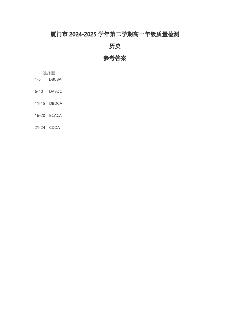 福建省厦门市2024-2025学年第二学期高一年级期末质量检测 历史答案.pdf