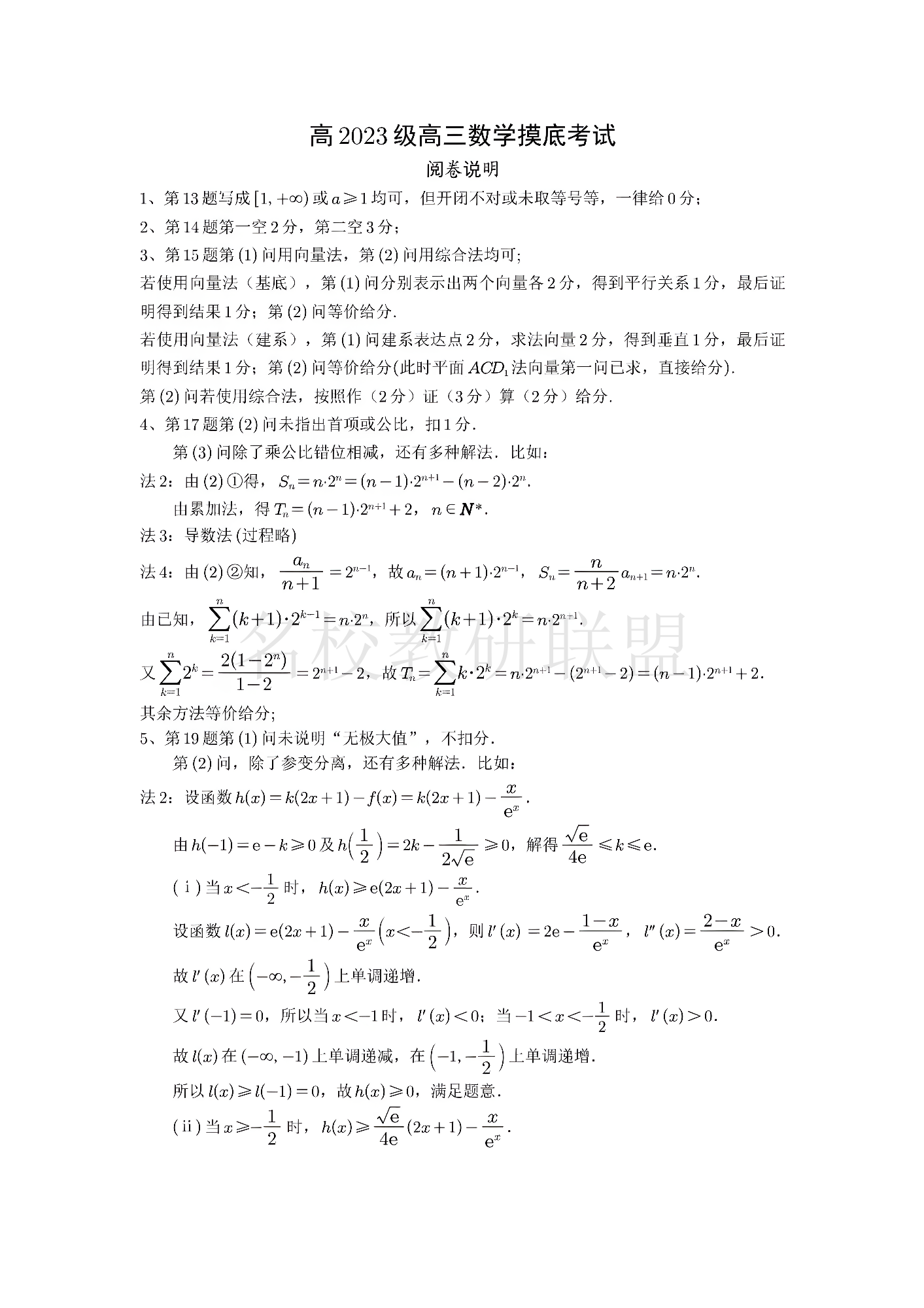 四川省成都市2023级高中毕业班摸底测试(成都零诊)数学阅卷说明.pdf