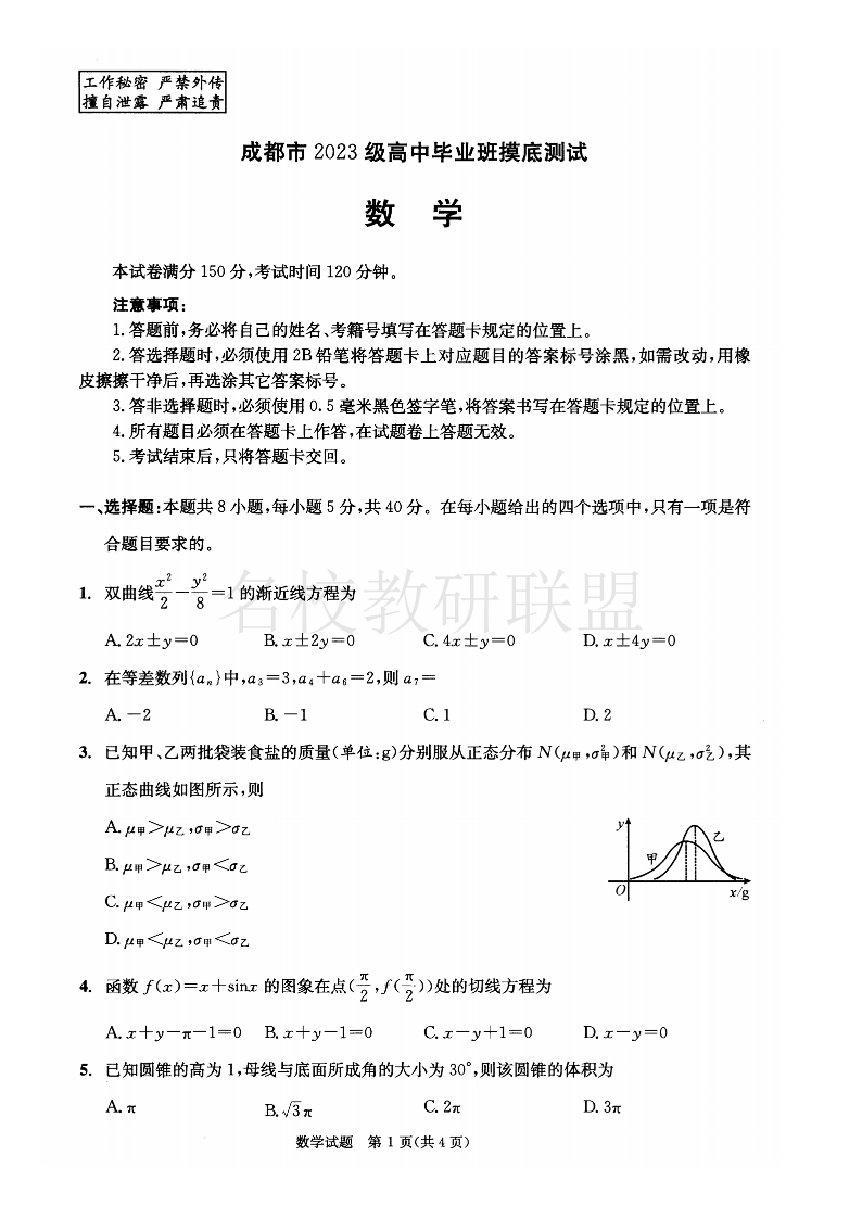 四川省成都市2023级高中毕业班摸底测试(成都零诊)数学.pdf