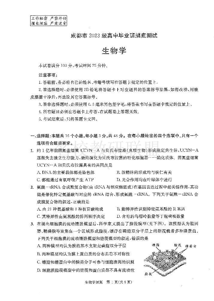 四川省成都市2023级高中毕业班摸底测试(成都零诊)生物.pdf