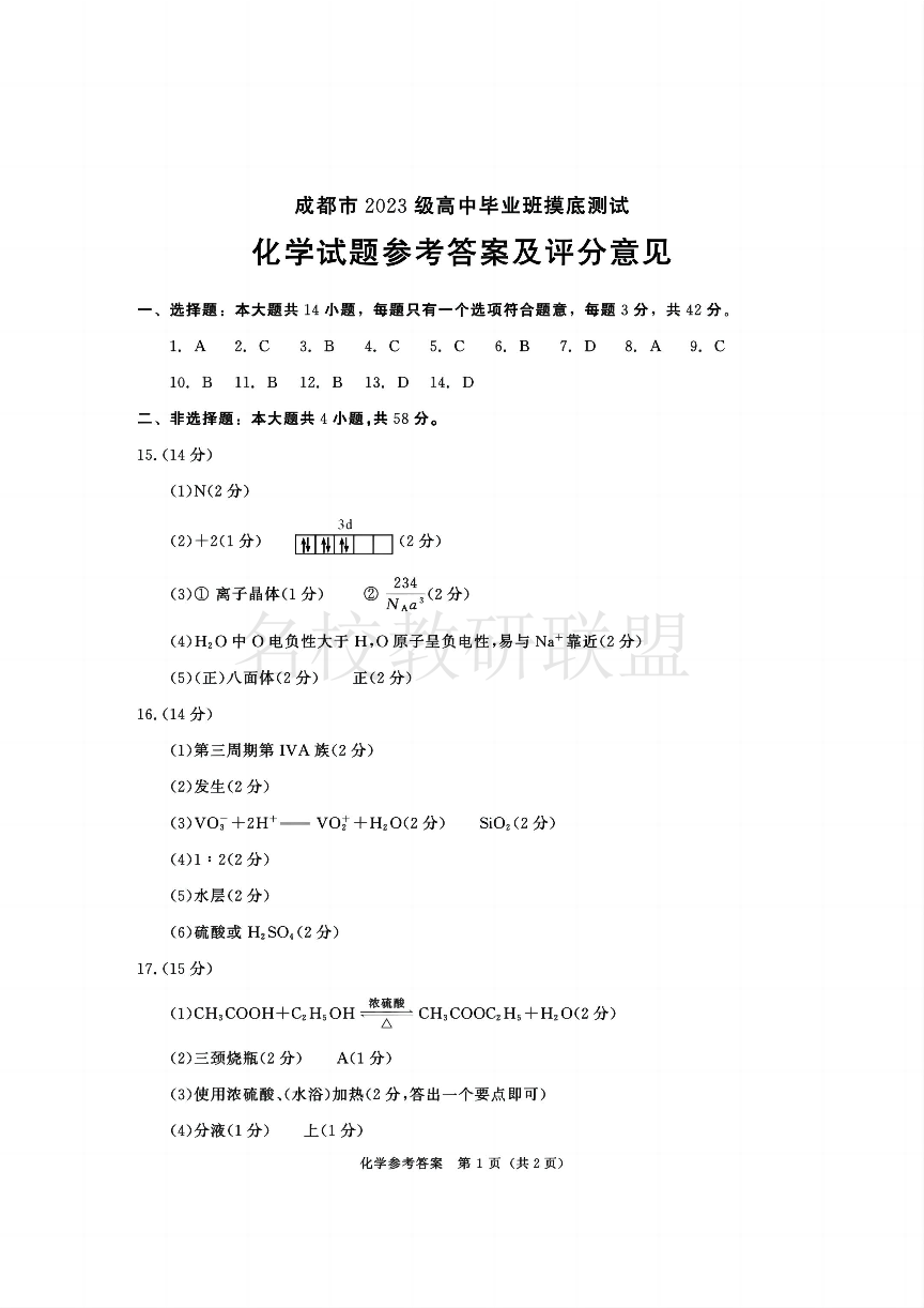 四川省成都市2023级高中毕业班摸底测试(成都零诊)化学答案.pdf