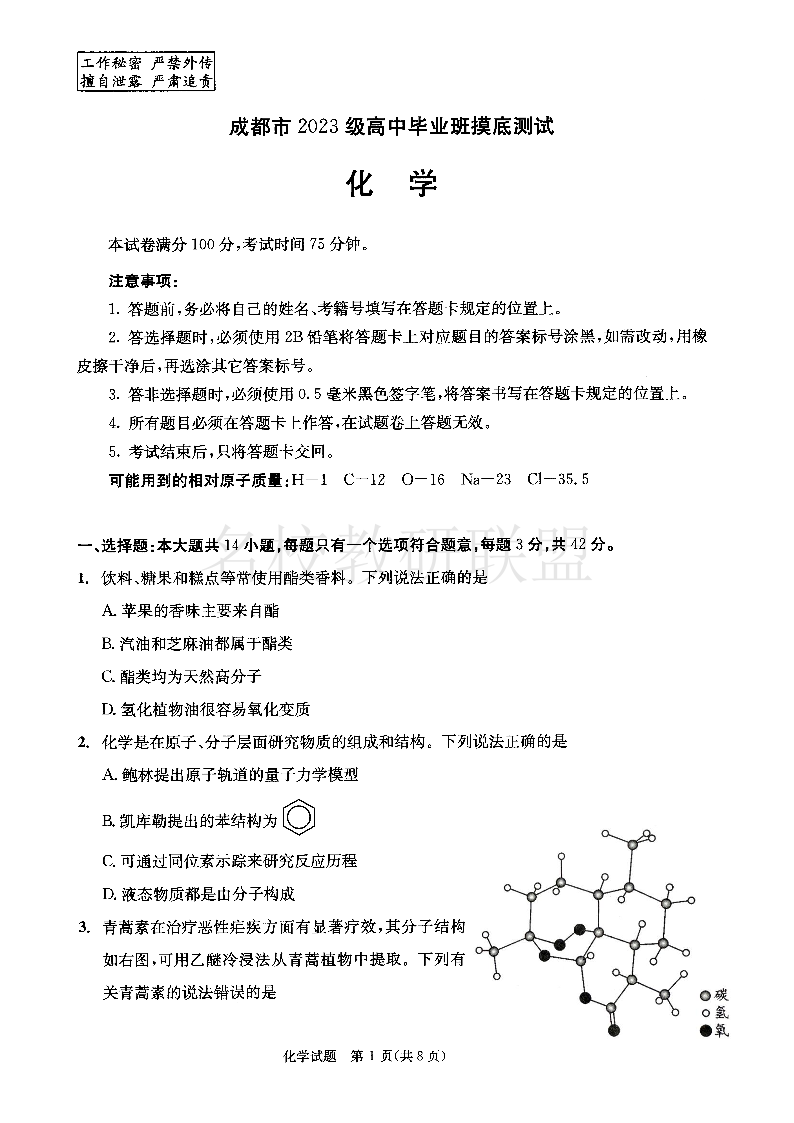 四川省成都市2023级高中毕业班摸底测试(成都零诊)化学.pdf