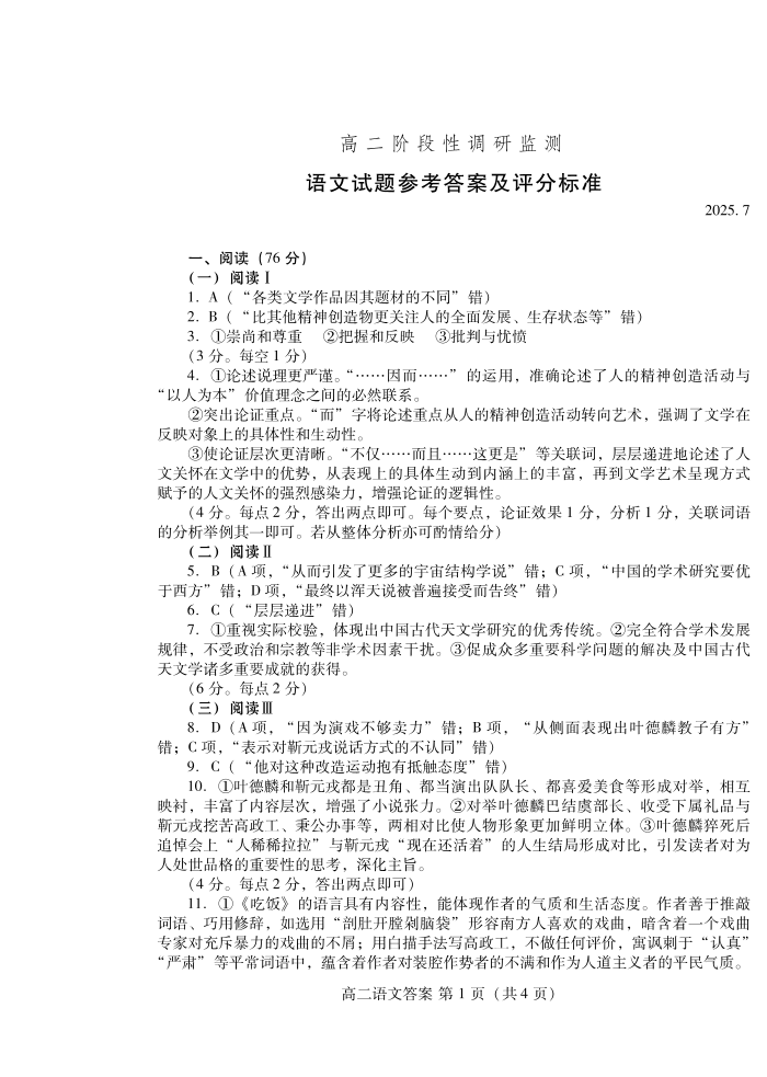 山东省潍坊市2026届高二阶段性调研监测 语文答案.pdf