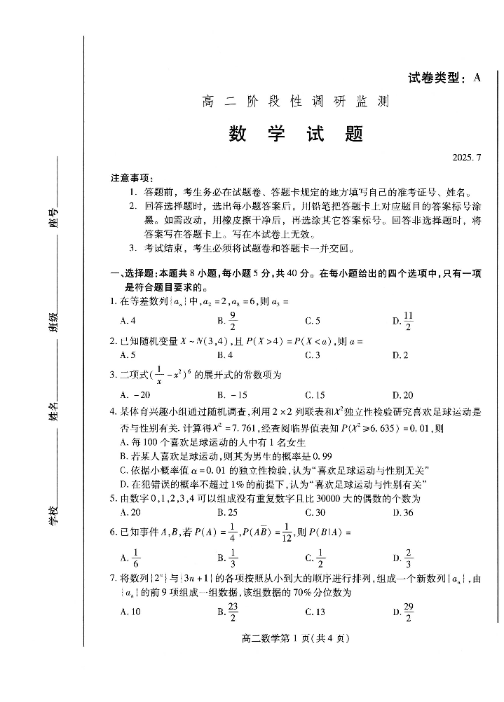 山东省潍坊市2026届高二阶段性调研监测 数学.pdf