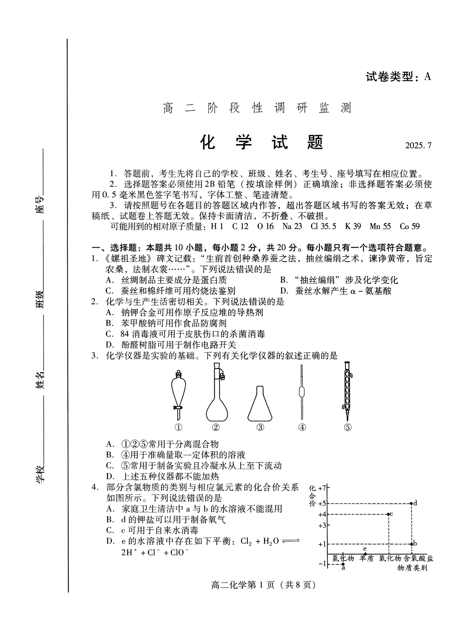 山东省潍坊市2026届高二阶段性调研监测 化学.pdf