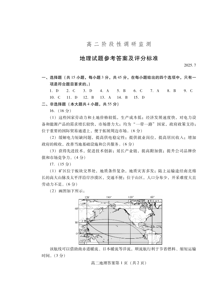 山东省潍坊市2026届高二阶段性调研监测 地理答案.pdf