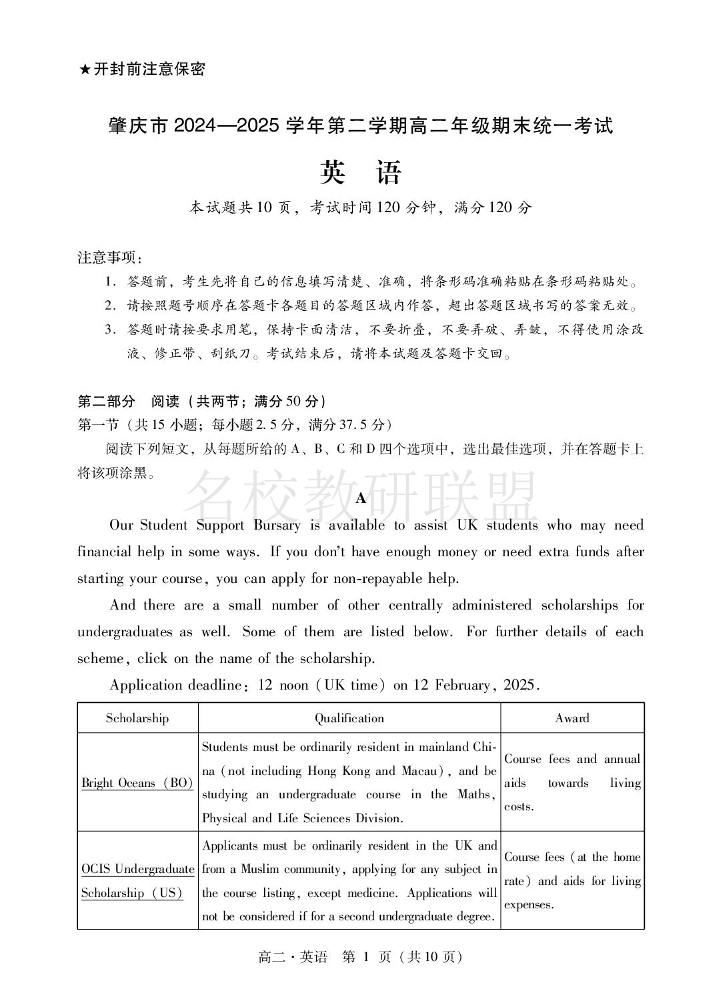 肇庆市2024-2025学年高二下学期期末统一考试 英语.pdf