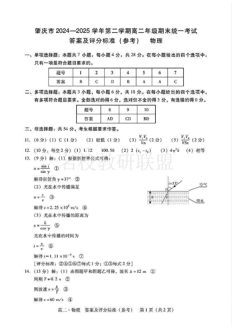 肇庆市2024-2025学年高二下学期期末统一考试 物理答案.pdf