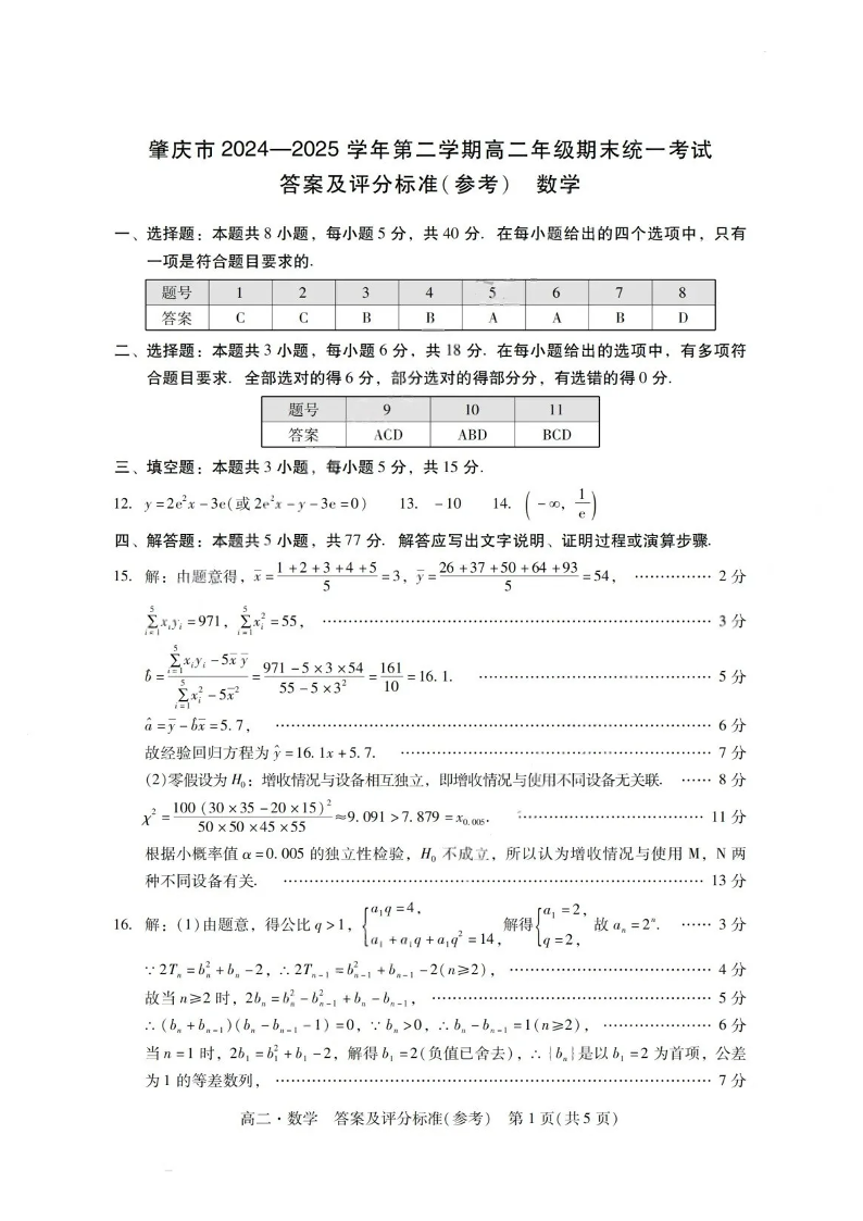 肇庆市2024-2025学年高二下学期期末统一考试 数学答案.pdf