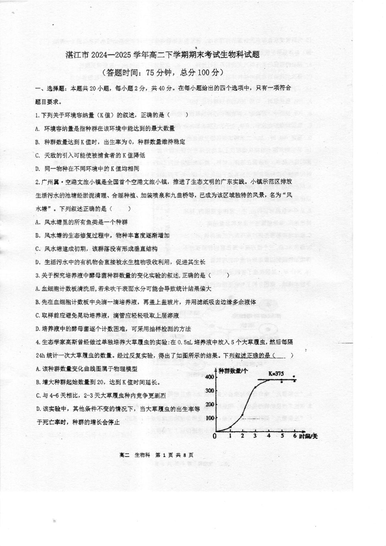 广东省湛江市2024-2025学年高二下学期期末调研测试 生物试卷(含答案).pdf