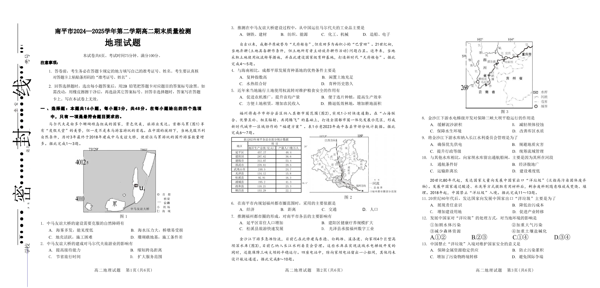 福建省南平市2024-2025学年第二学期高二期末质量检测 地理试卷(含答案).pdf