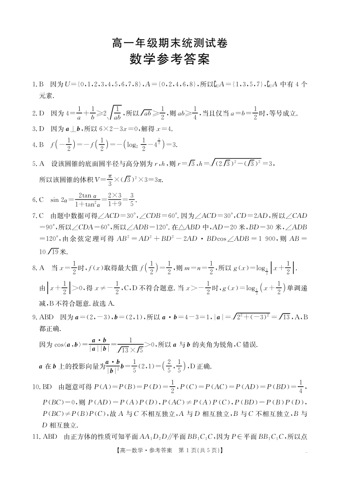 云南省临沧市2024-2025学年下学期高一期末质量测试 数学答案.pdf