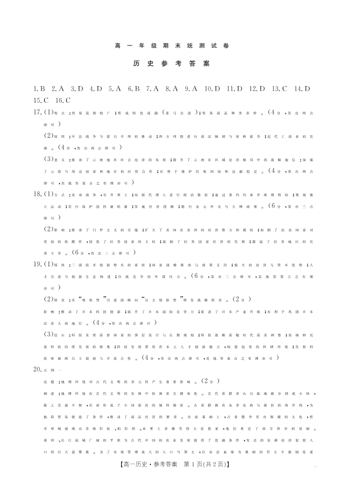 云南省临沧市2024-2025学年下学期高一期末质量测试 历史答案.pdf