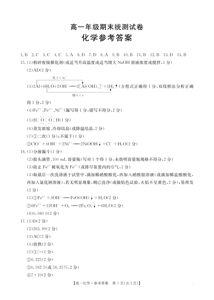云南省临沧市2024-2025学年下学期高一期末质量测试 化学答案.pdf