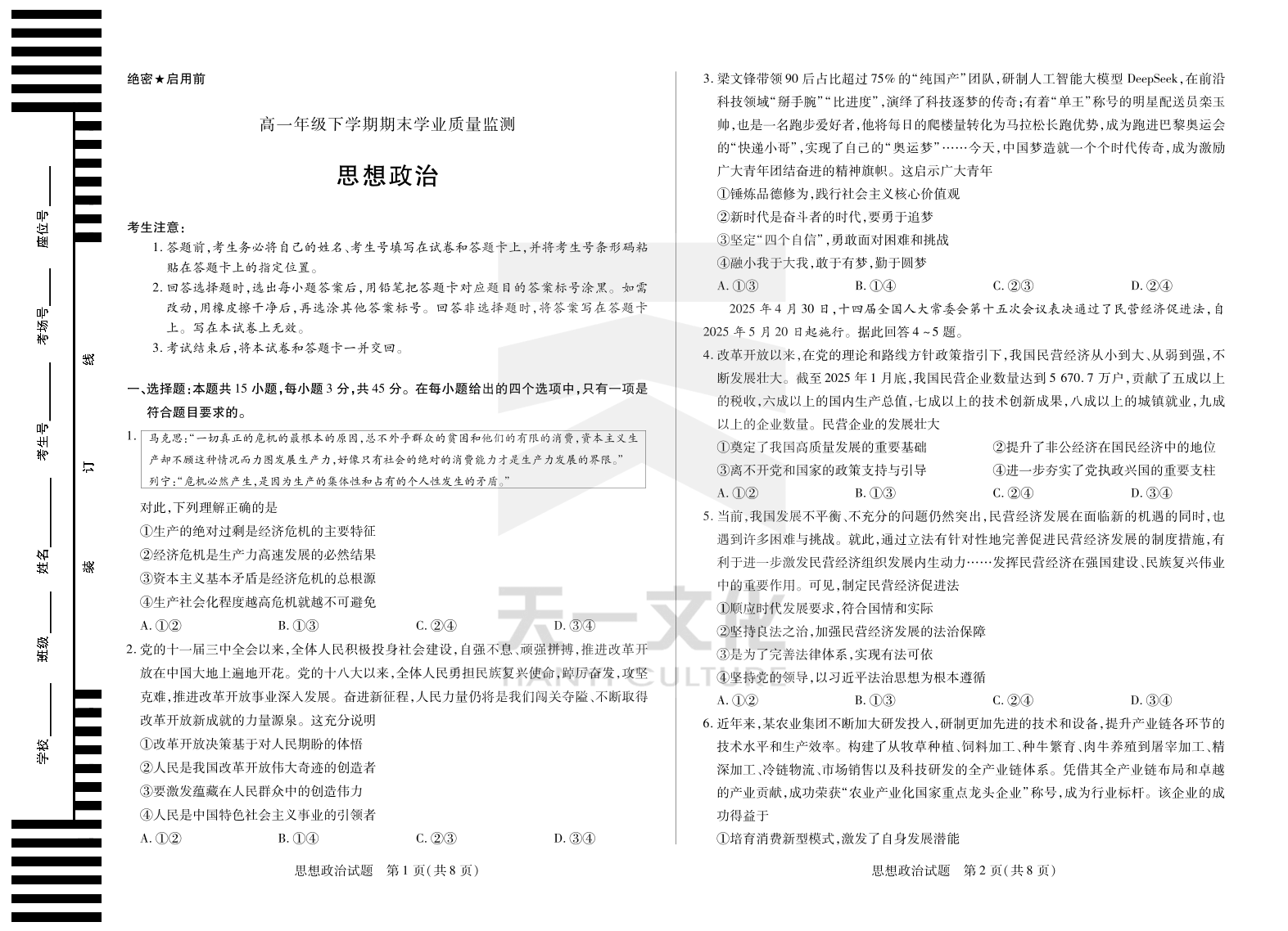 政治高一下期末学业质量监测.pdf