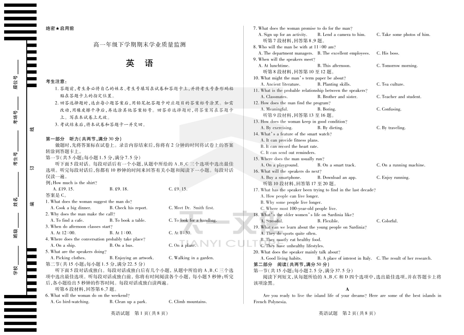 英语高一下期末学业质量监测.pdf
