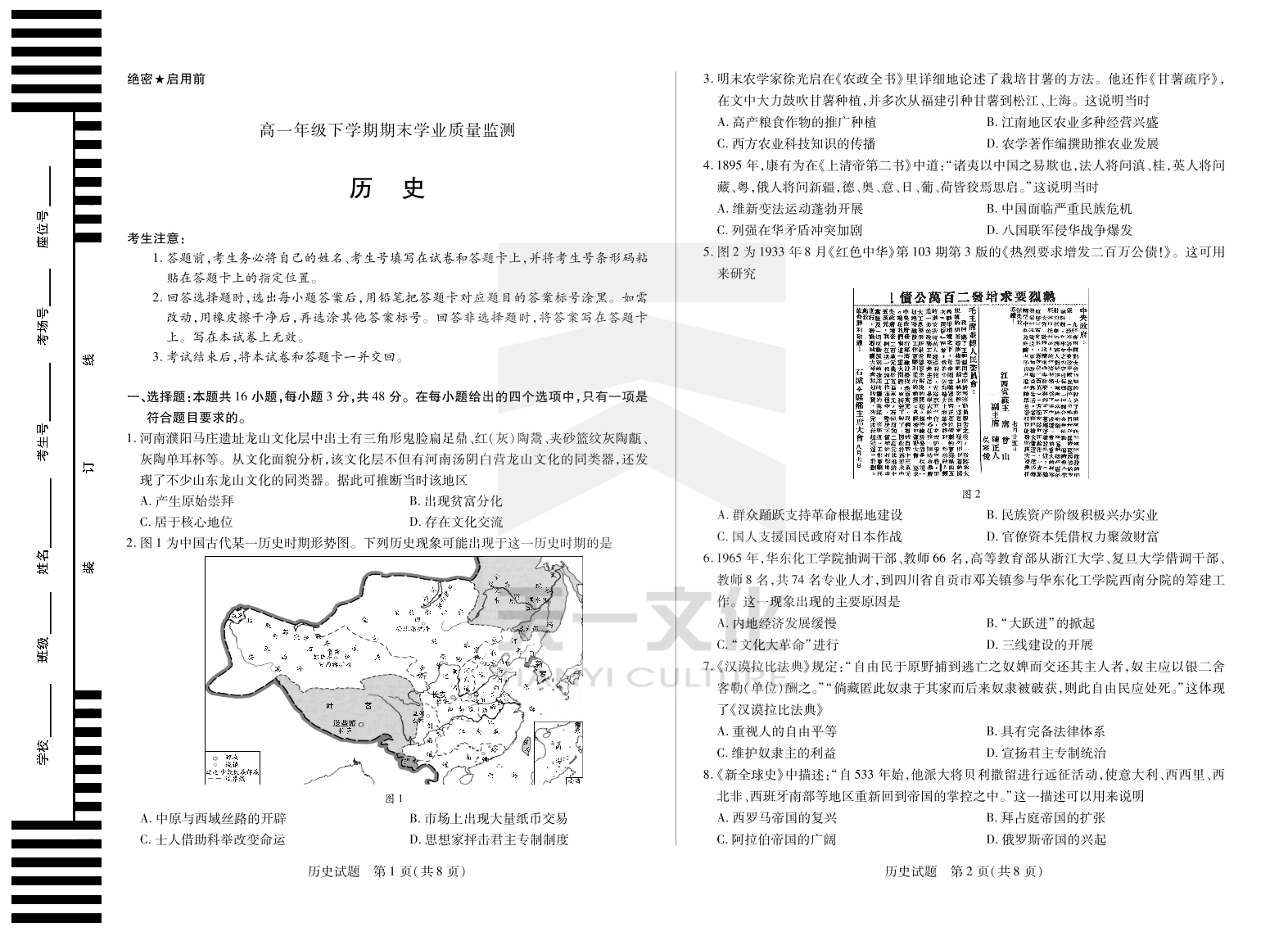 历史高一下期末学业质量监测.pdf